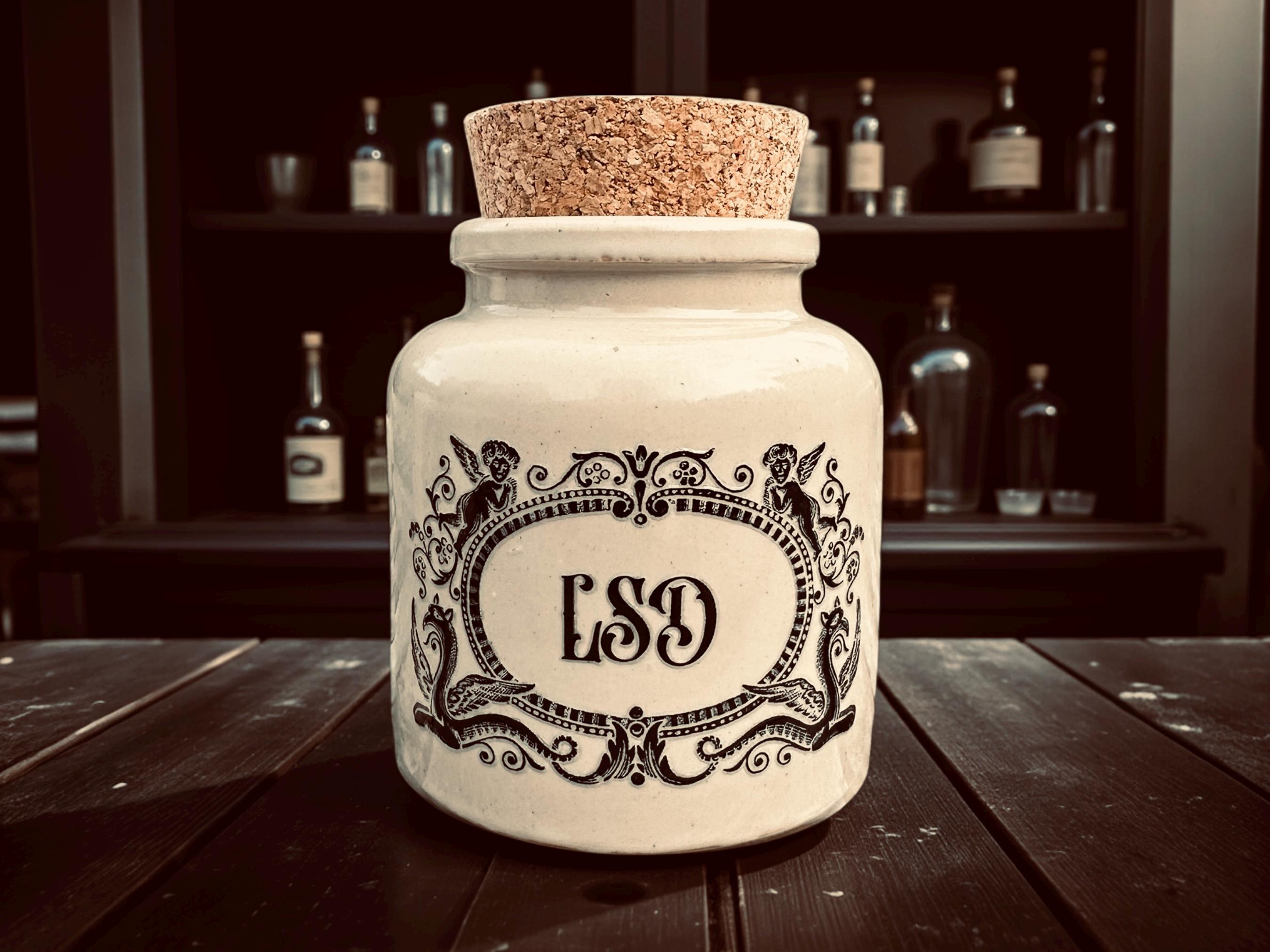 Apothecary Stoneware Jar “LSD” Vintage Style Jar 11 cm x 8.5 cm Crackpottery