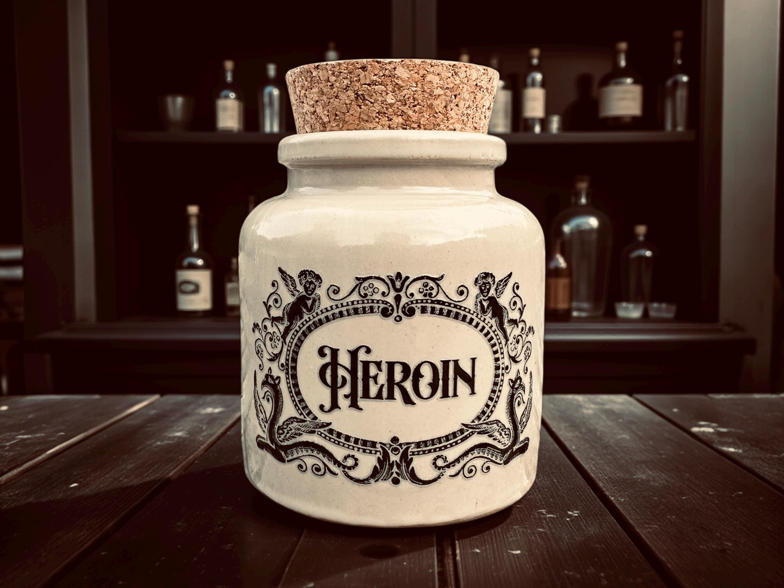Need somewhere to stash your questionable life choices, broken dreams, or just your cotton buds? Look no further than this delightfully inappropriate altered apothecary jar, tastefully labelled “Heroin” – because nothing says “I’ve got my shit together” quite like vintage-style drug paraphernalia you absolutely cannot use for its original purpose.