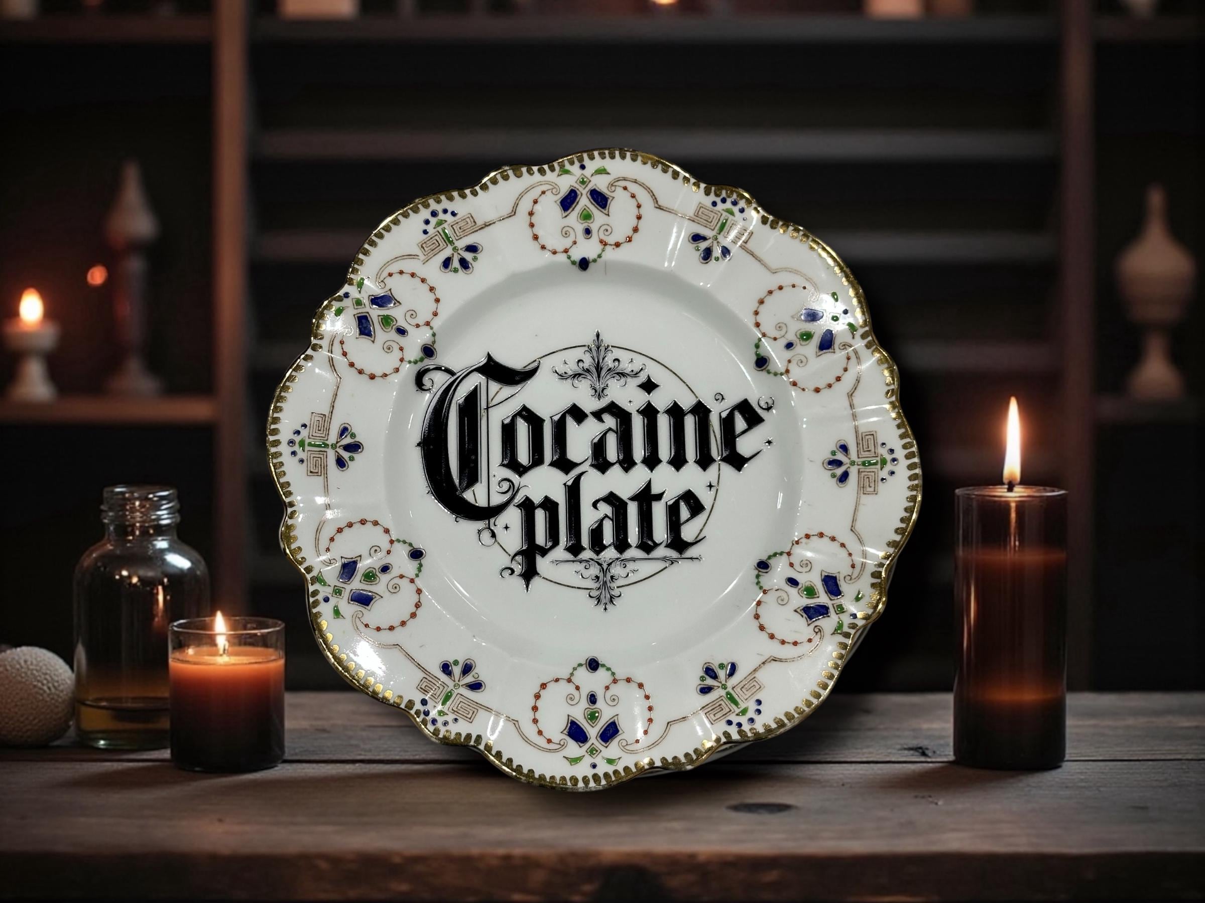 Perfect for the mantelpiece, the shrine to your 2007 era, or your very disappointed mother’s dining room. Comes with its own plate stand, because this baby isn’t touching your peasant flat surfaces. No actual cocaine included (sorry to everyone named Chad), but it will elevate your status as local menace/art collector.