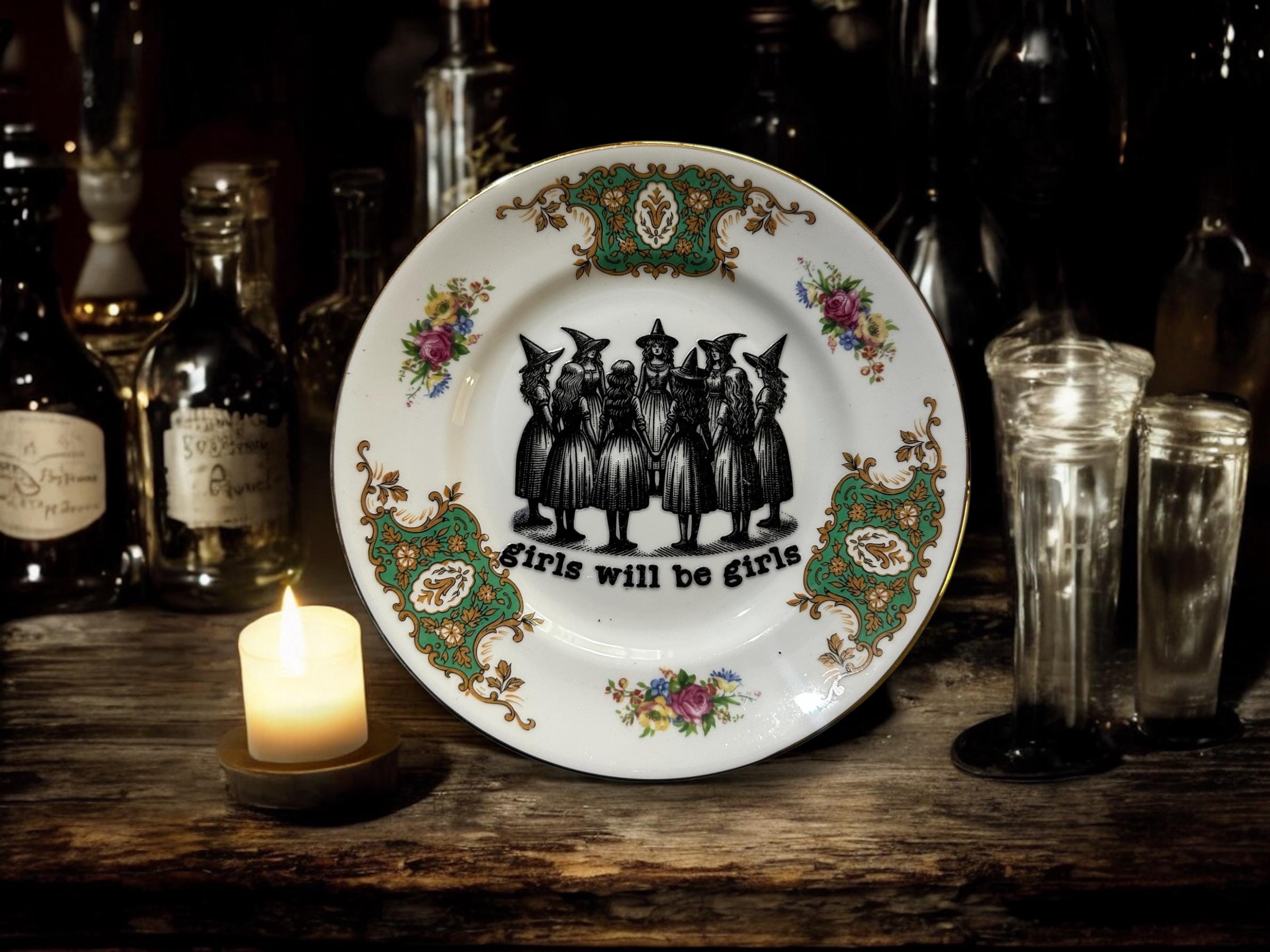 **Tags**: #GirlsWillBeGirls #WitchPlate #VintagePlate #WitchyDecor #HandwashOnly #MagicalHomeDecor #VintageSass #FunnyHomeDecor #GirlsRunTheWorld #SpookyVibes #WitchyHumor #SpiritualDecor