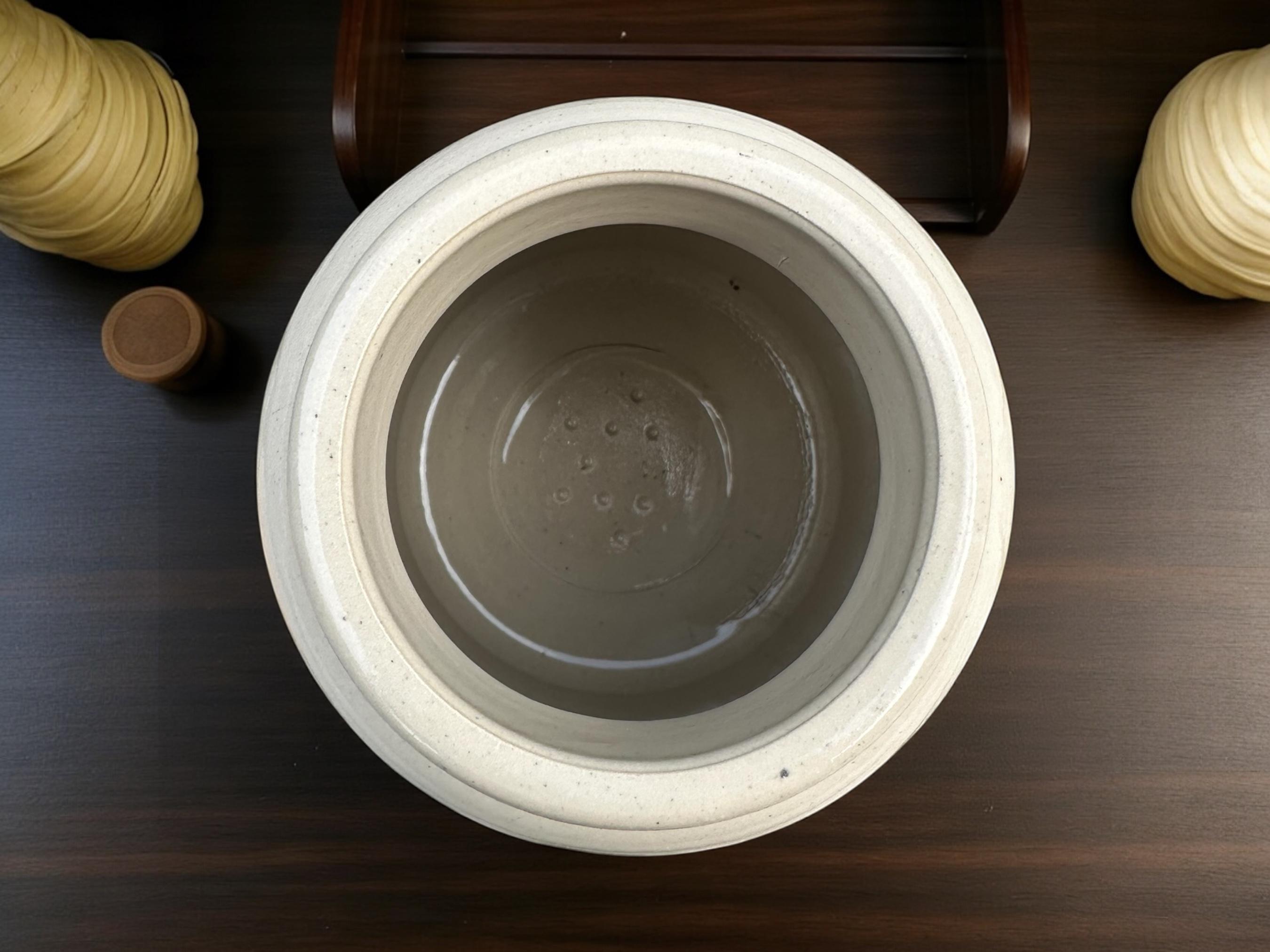 Stoneware jar with black print