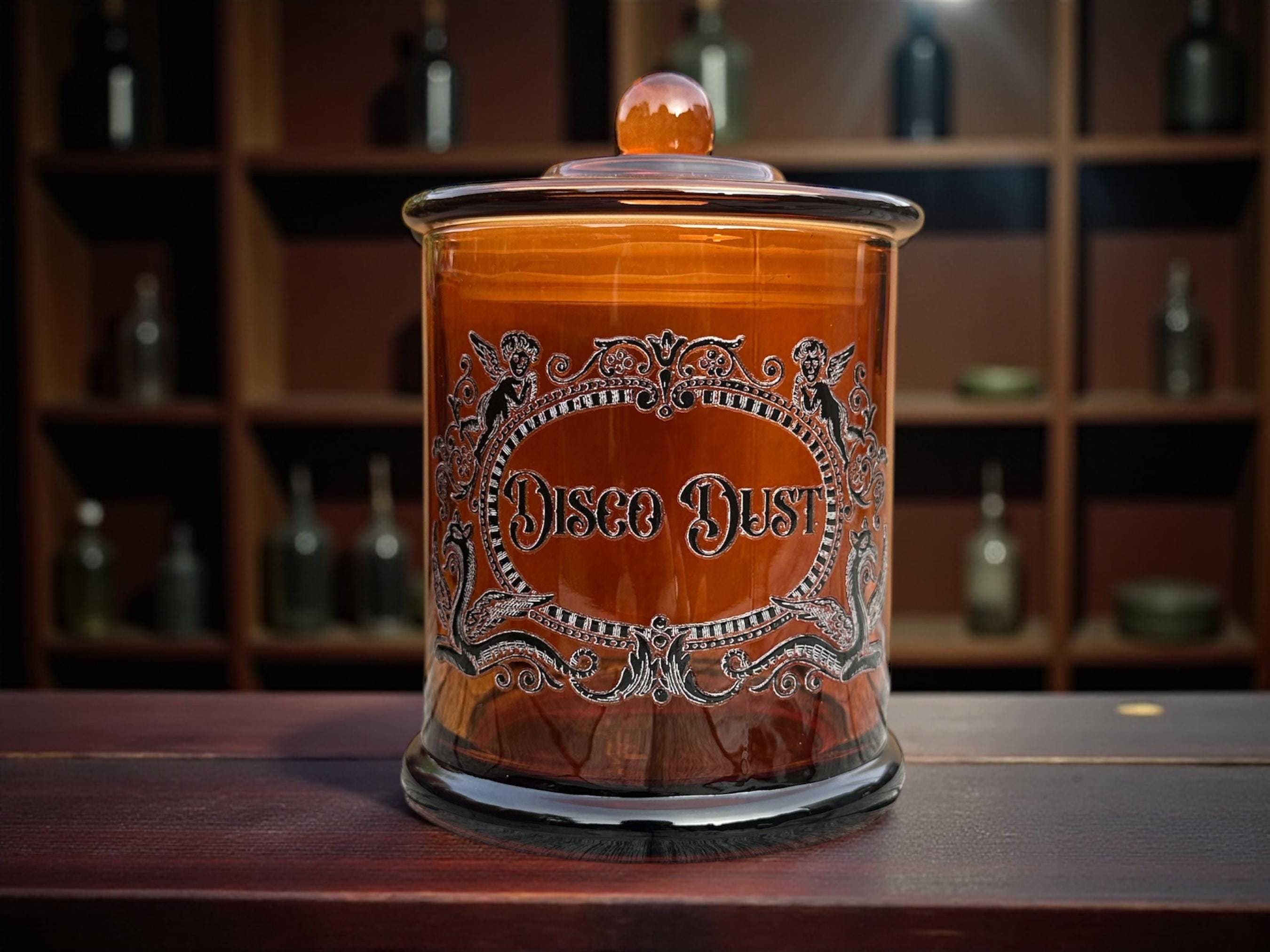 Apothecary Amber Glass Jar “Disco Dust” Vintage Style Jar 15 cm x 10 cm Crackpottery