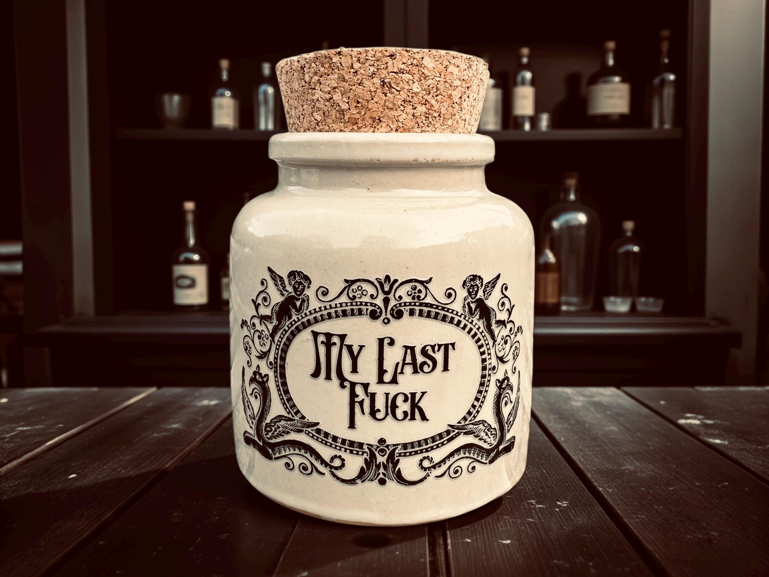 Apothecary Stoneware Jar “My Last Fuck” Vintage Style Jar 11 cm x 8.5 cm Crackpottery