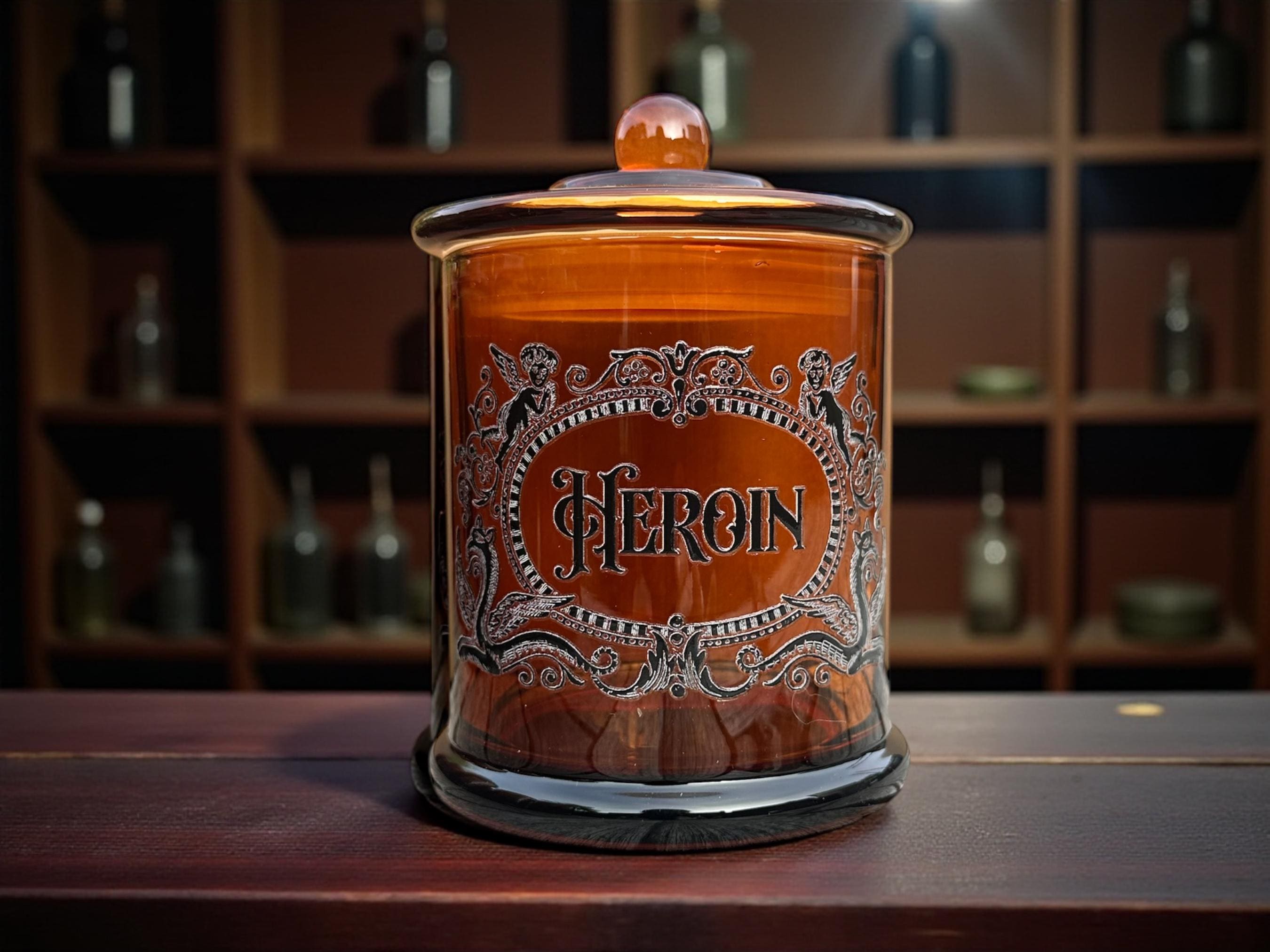 Apothecary Amber Glass Jar “Heroin” Vintage Style Jar 15 cm x 10 cm Crackpottery