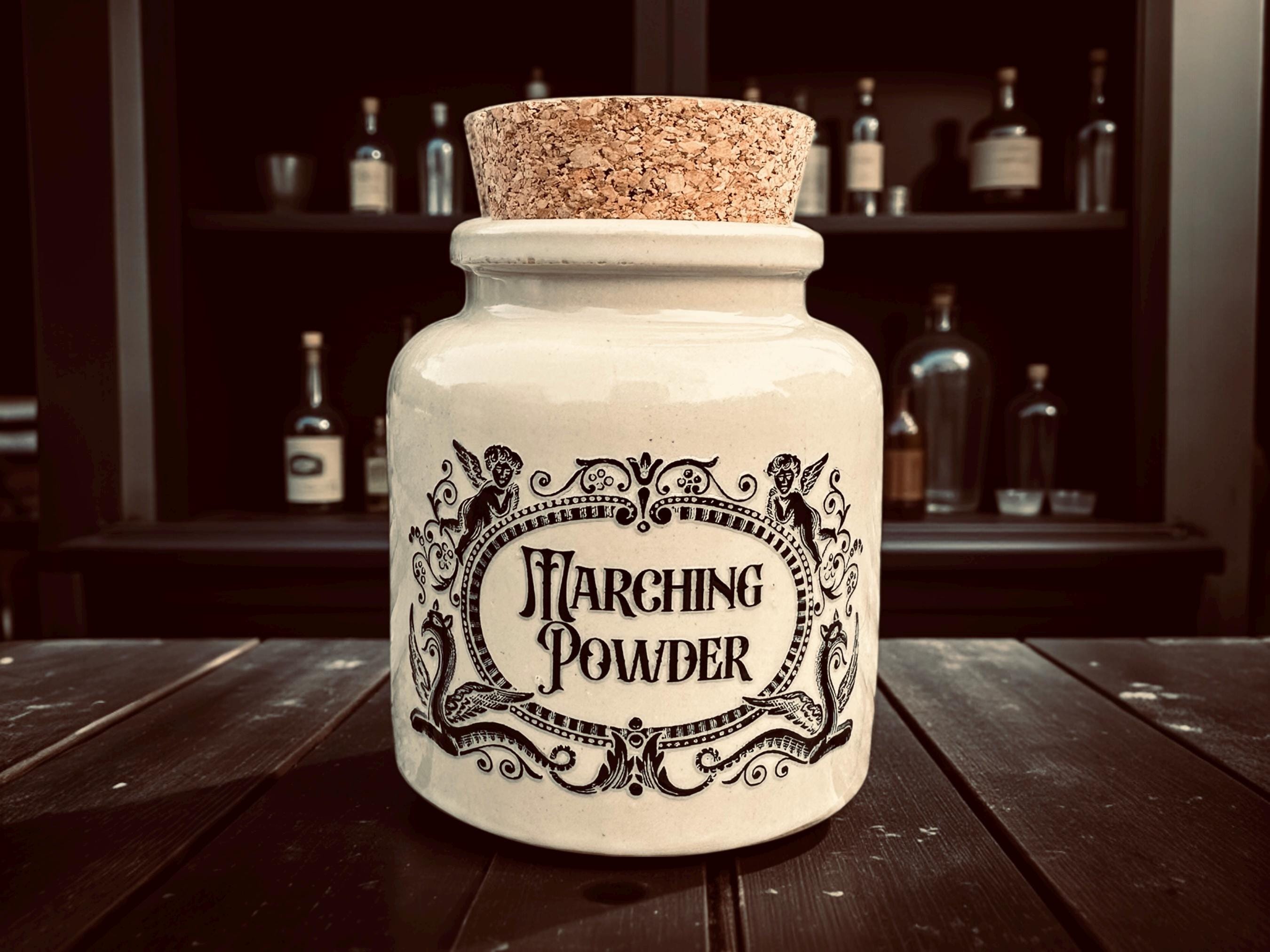 For the go-getter who runs on questionable energy and pure chaos. This stoneware apothecary jar is labelled “Marching Powder” in sharp black print, perfect for sugar, coffee, or whatever keeps you functioning through the capitalist nightmare.