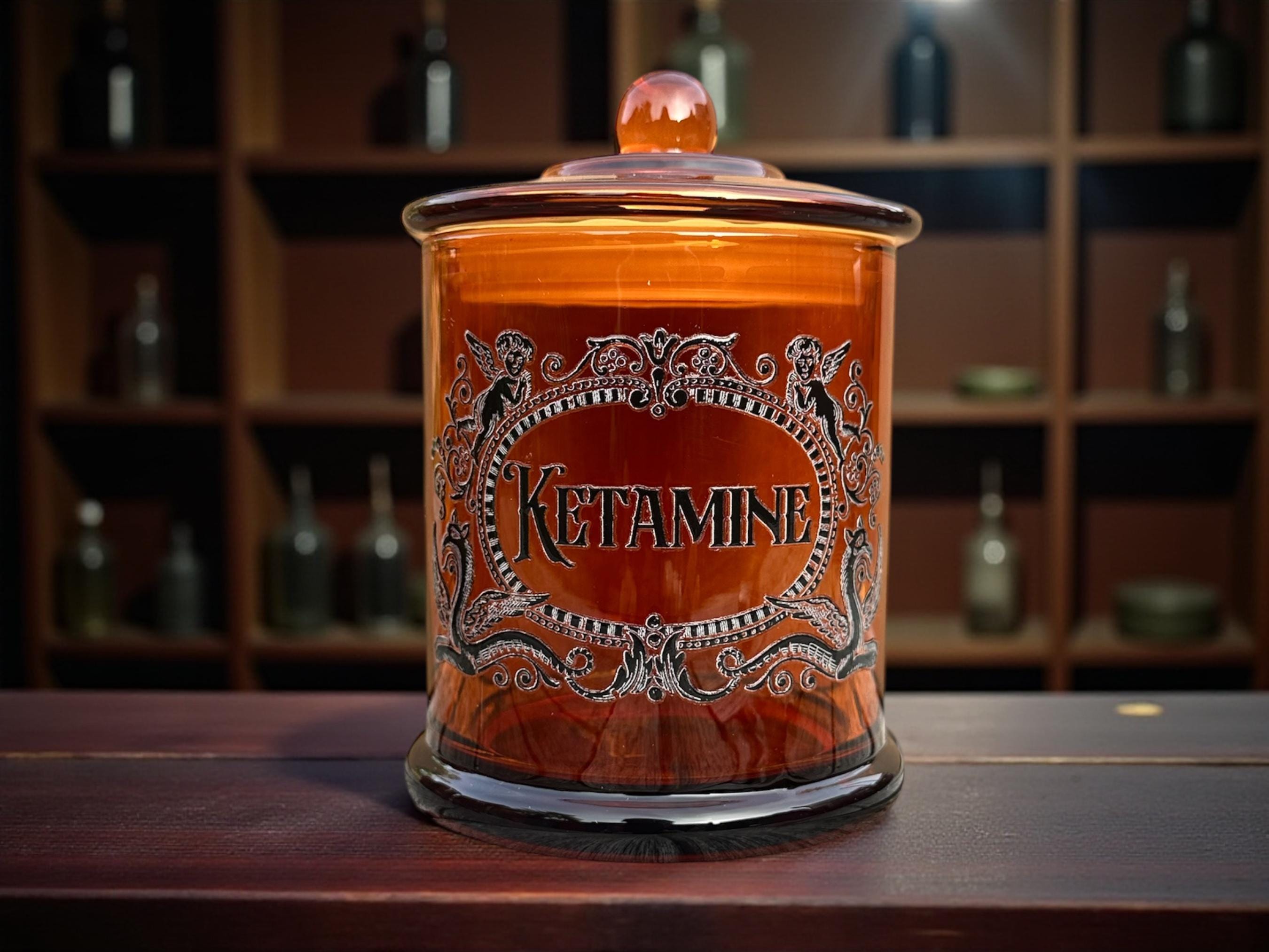Apothecary Amber Glass Jar “Ketamine” Vintage Style Jar 15 cm x 10 cm Crackpottery