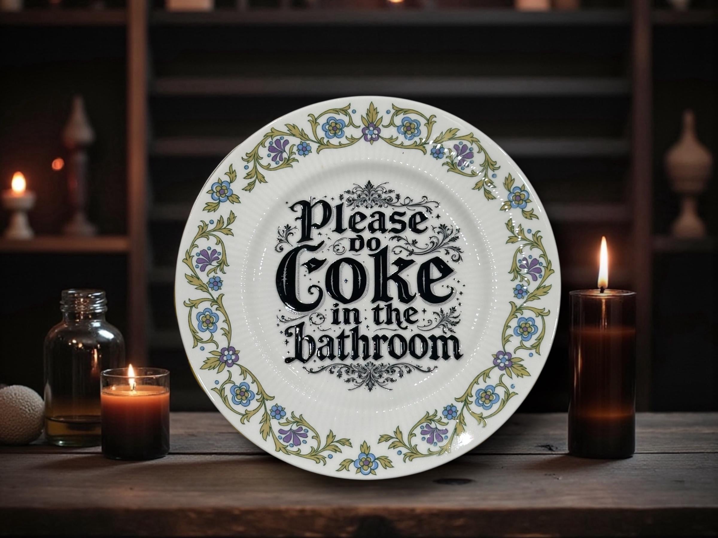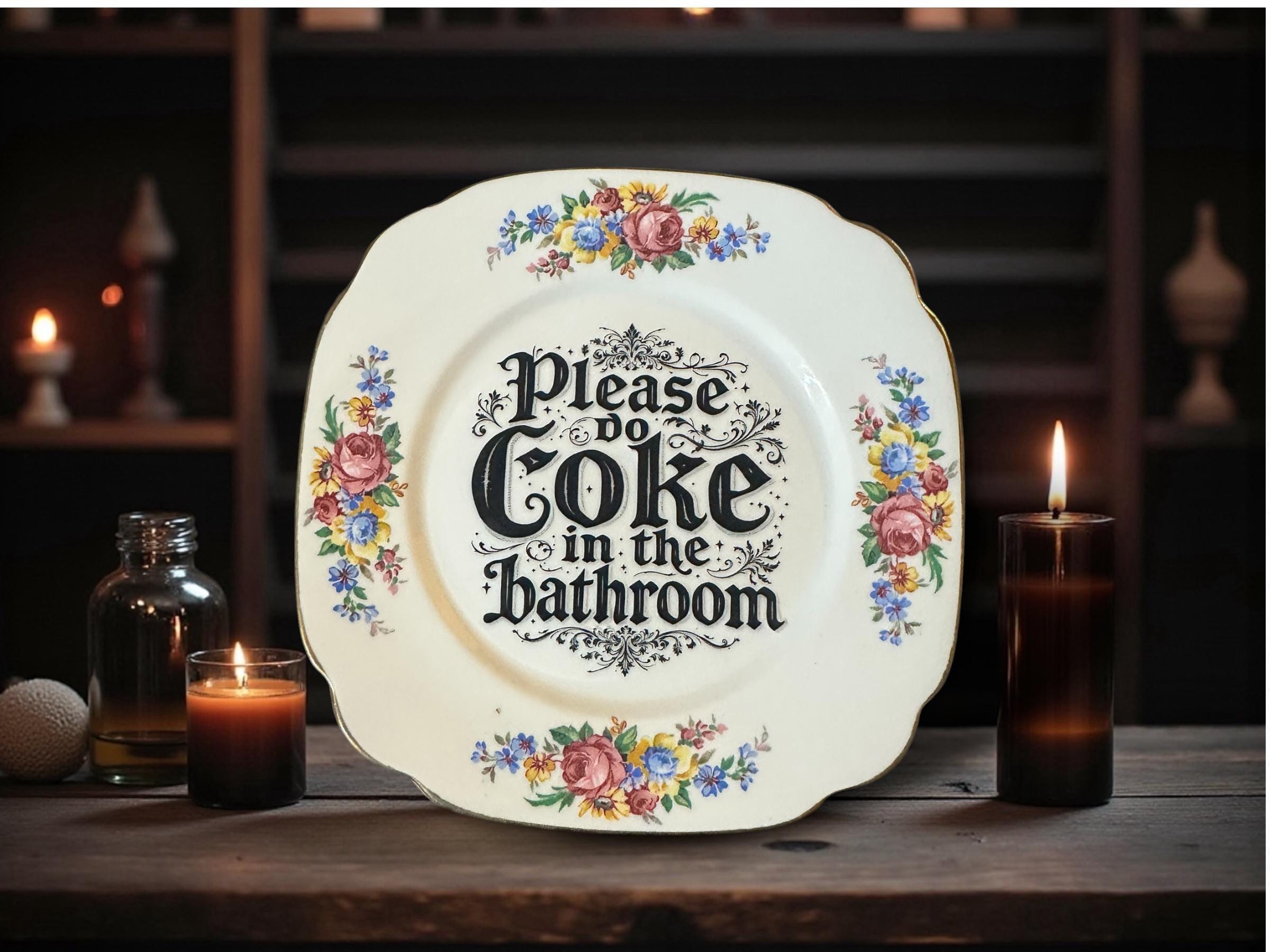 💅 16cm “Please Do Coke in the Bathroom” Plate – Vintage Crackpottery 💅