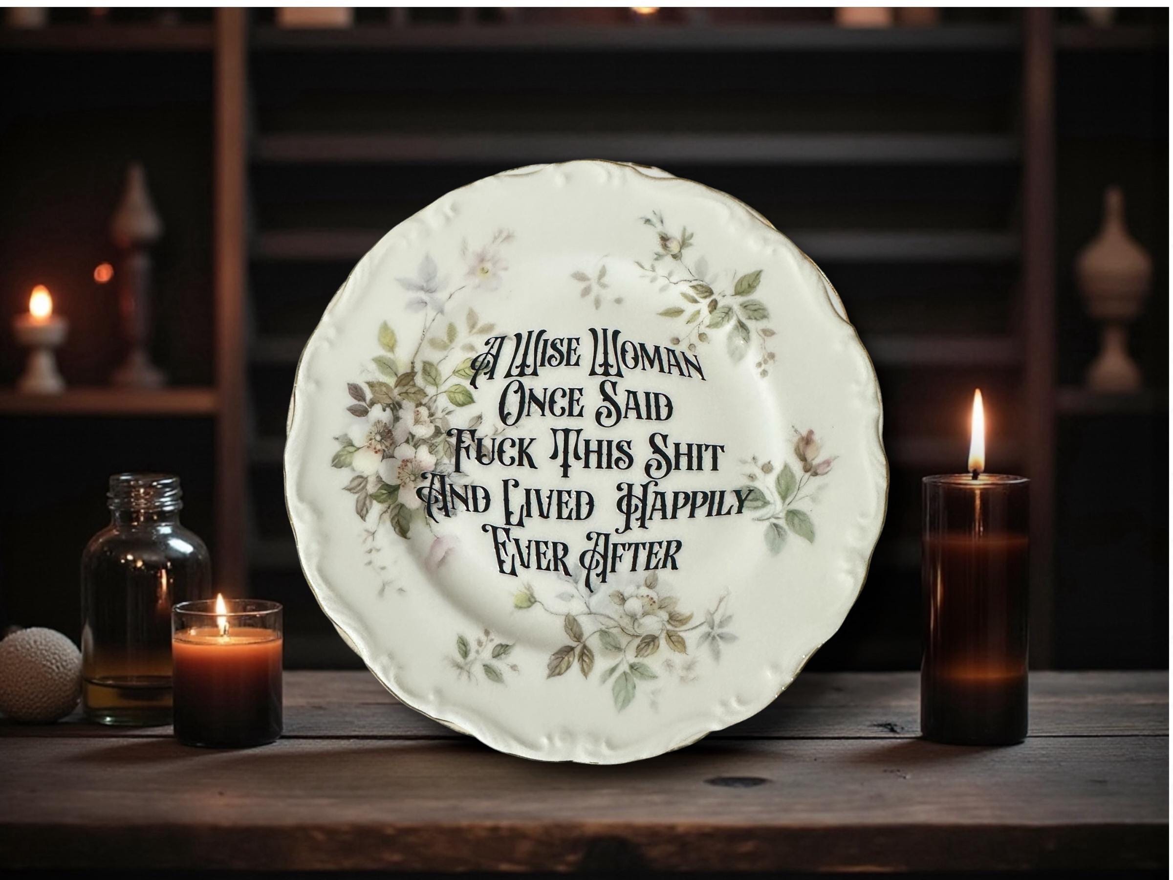 Introducing the ultimate life motto for your wall or shelf: “A wise woman once said ‘fuck this shit’ and lived happily ever after.” Words to live by, immortalised on a charming 16cm vintage plate — because who needs fairy tales when you’ve got brutal honesty and your own damn boundaries?