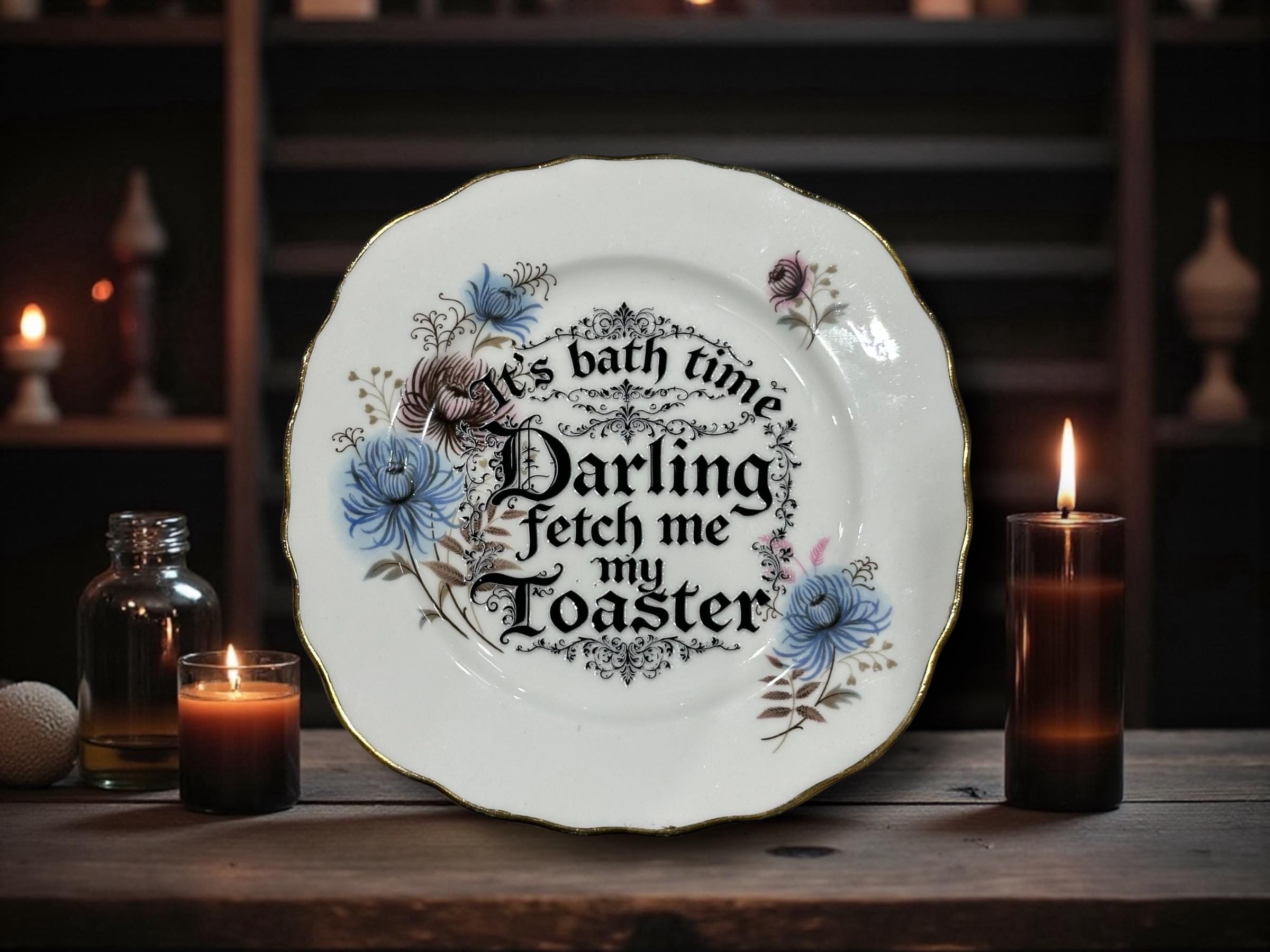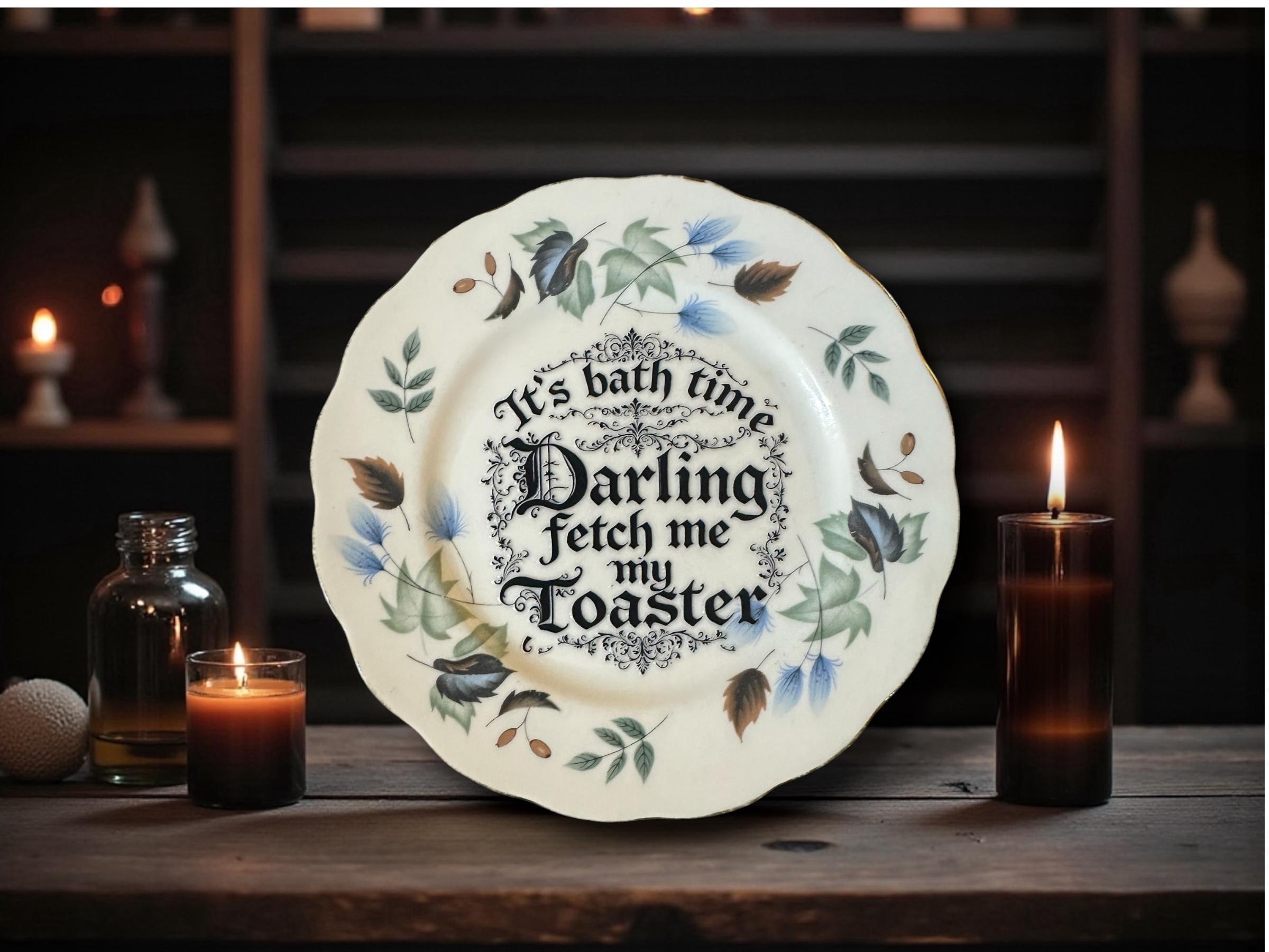 🛁 16cm “It’s Bathtime Darling, Fetch Me My Toaster” Plate – Vintage Crackpottery 🛁