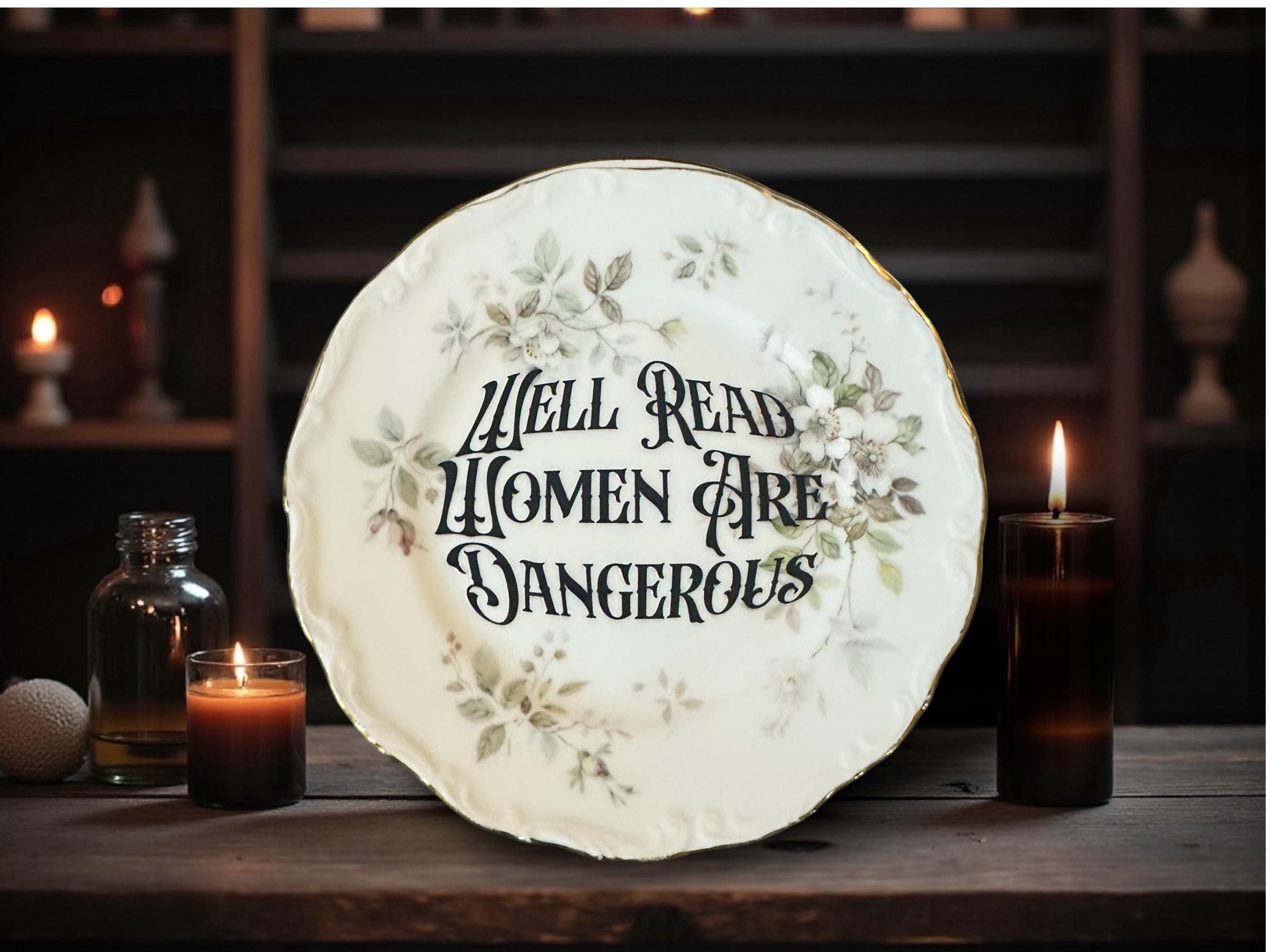Vintage 16cm Decorative Plate with Stand – “Well Read Women Are Dangerous”