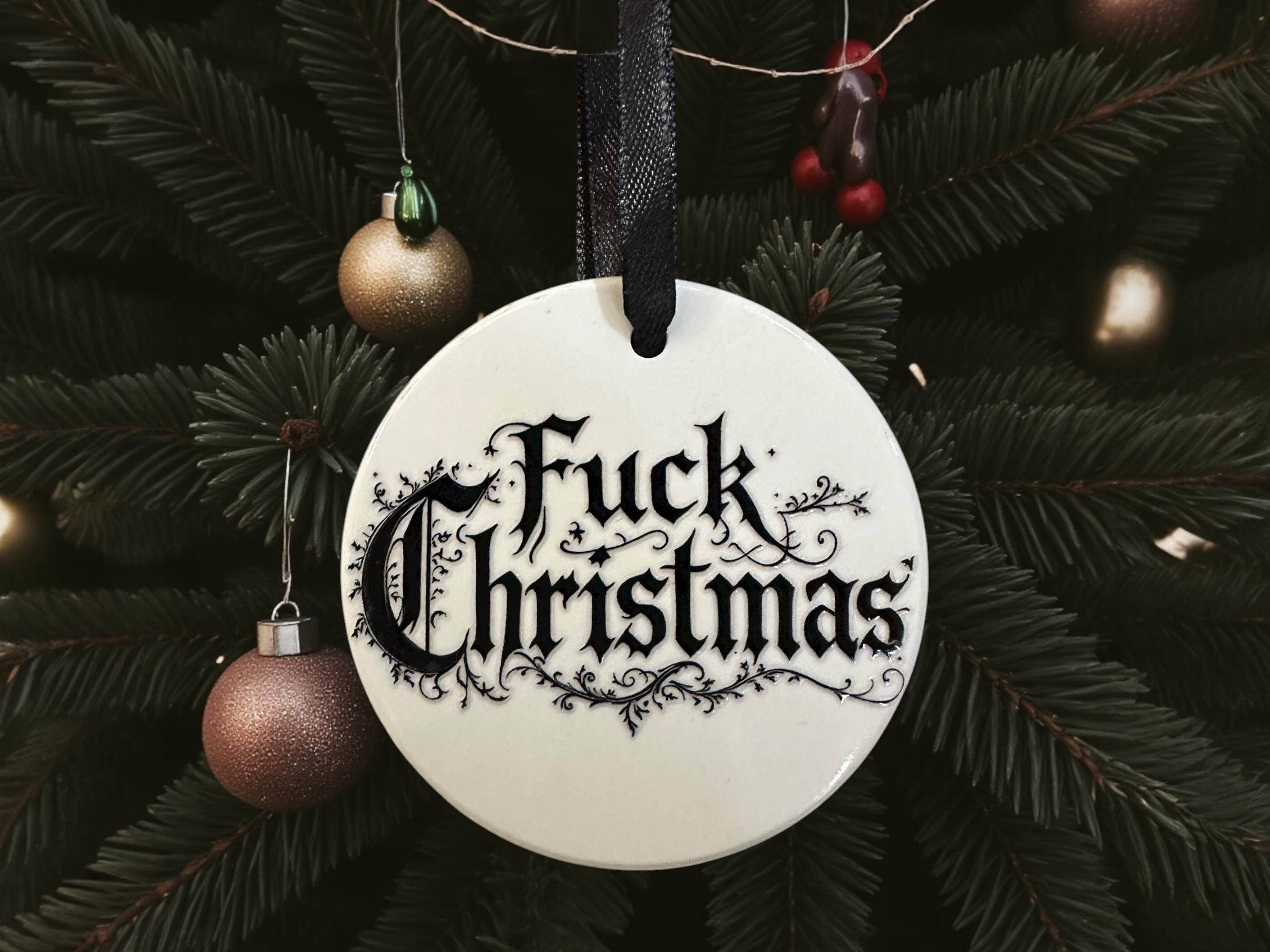 Finally, some festive honesty. This 8cm flat ceramic bauble boldly states “Fuck Christmas” in gothic lettering, finished with a black ribbon because nothing says holiday spirit like mild rage and exhaustion. Perfect for anyone who’s overworked, underpaid, and violently allergic to cheer.