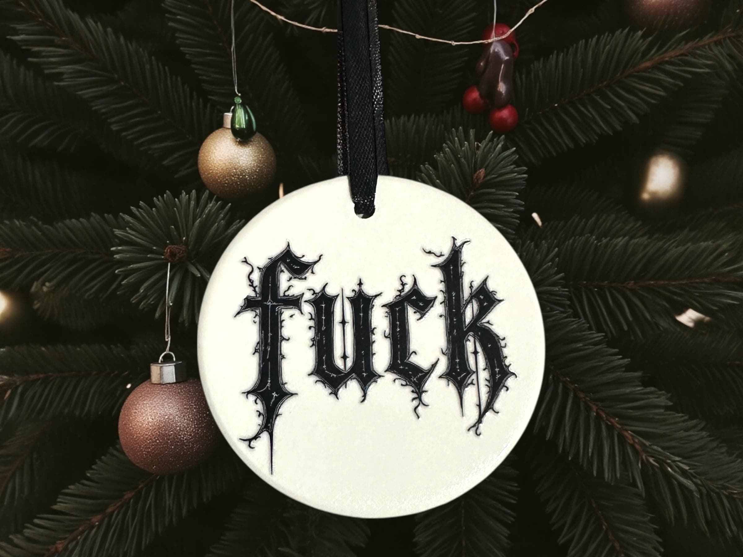 For when words fail and only a well-placed fuck will do. This gloriously blunt bauble is made from smooth white ceramic and tied with black ribbon, ready to hang proudly on your tree, your ex’s car mirror, or your boss’s office ficus.