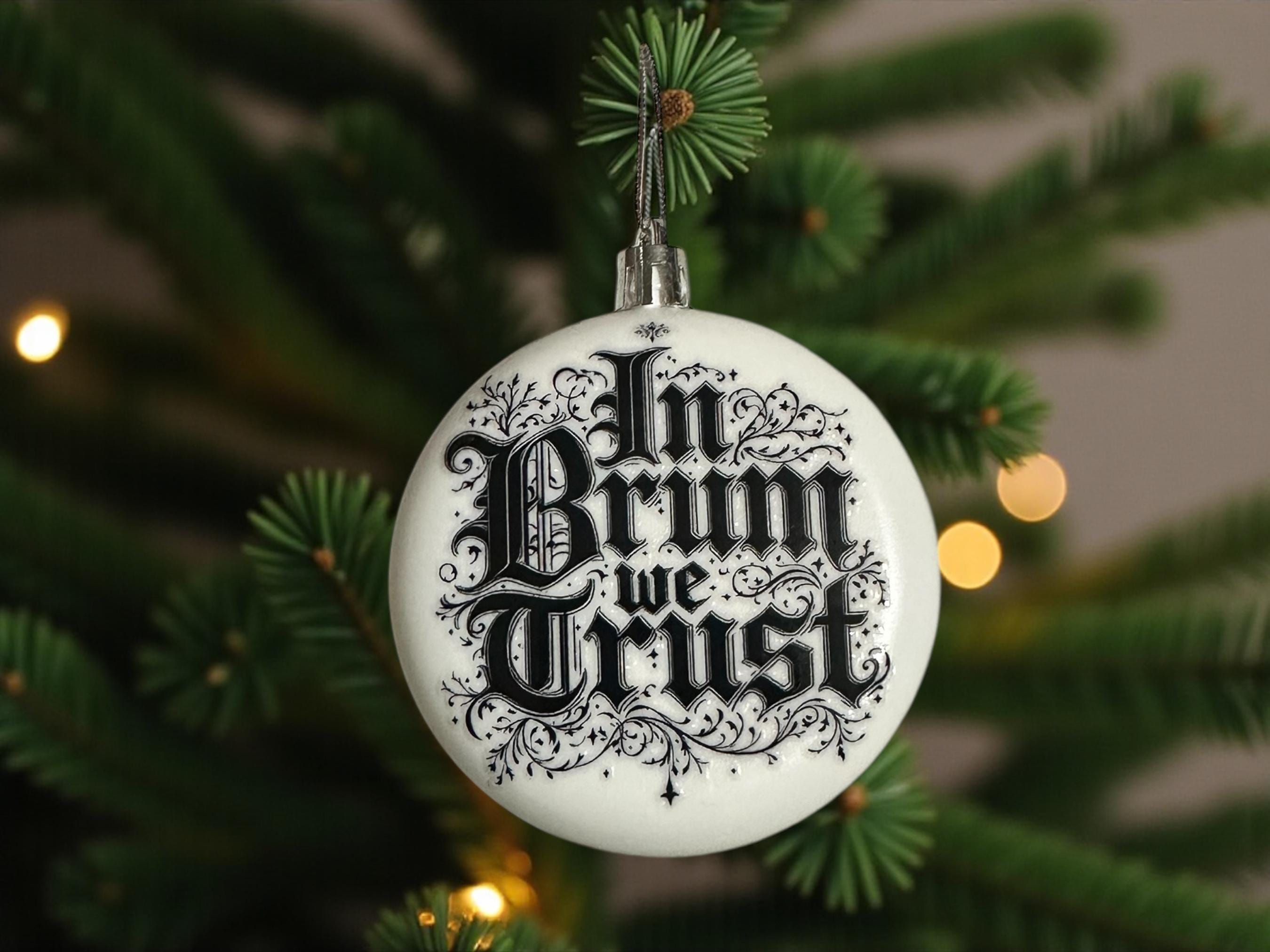 White Acrylic Rounded Christmas Bauble – “In Brum We Trust”