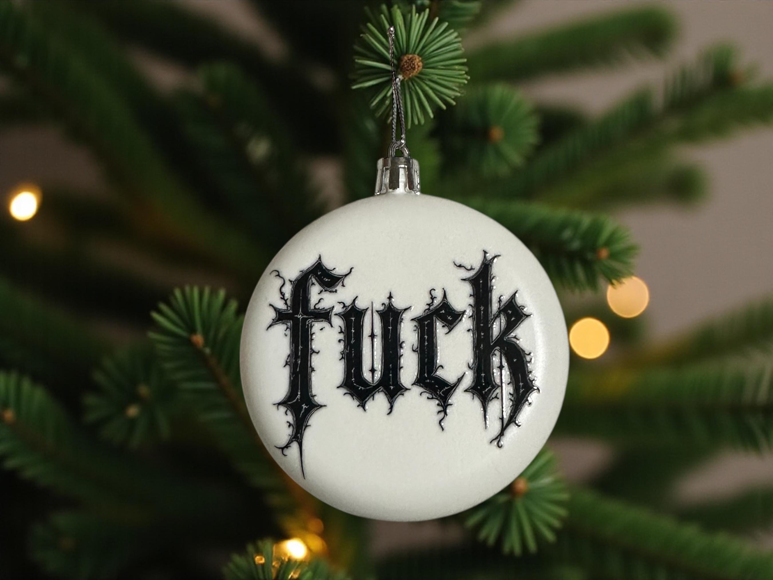 White Acrylic Rounded Christmas Bauble – “Fuck”
