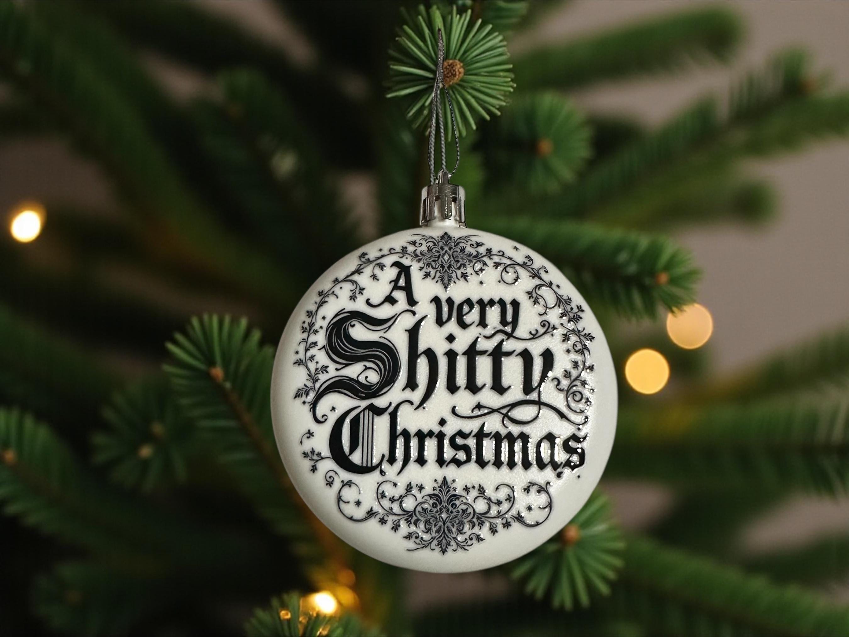 White Acrylic Rounded Christmas Bauble – “A Very Shitty Christmas”