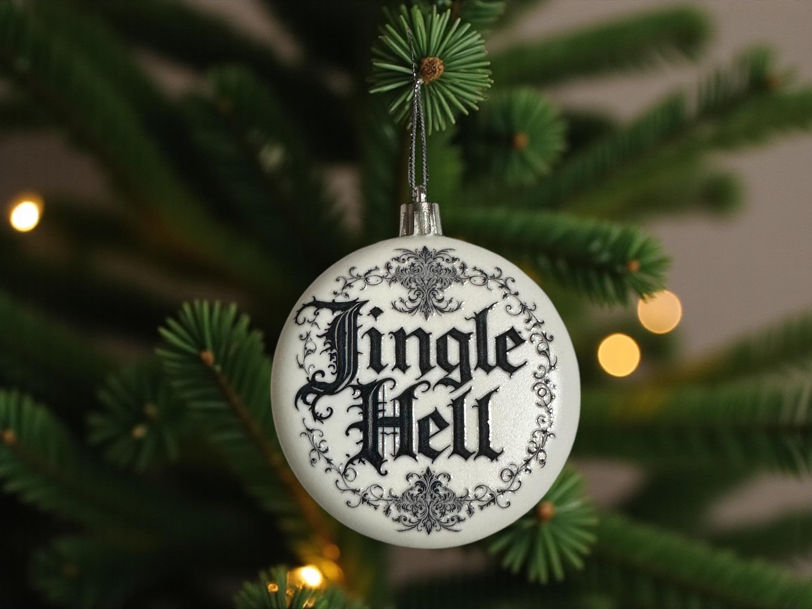 White Acrylic Rounded Christmas Bauble – “Jingle Hell”