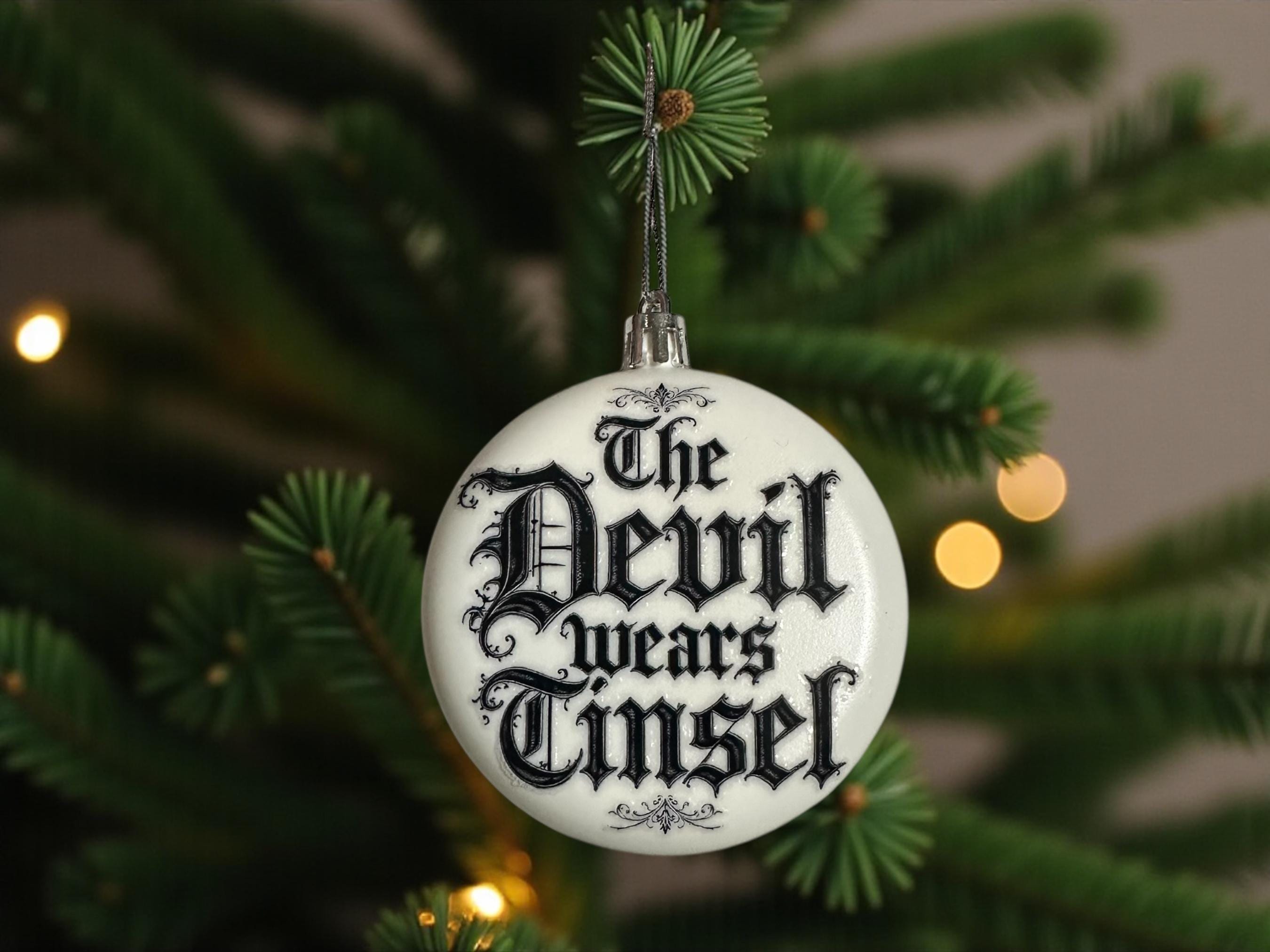 White Acrylic Rounded Christmas Bauble – “The Devil Wears Tinsel”