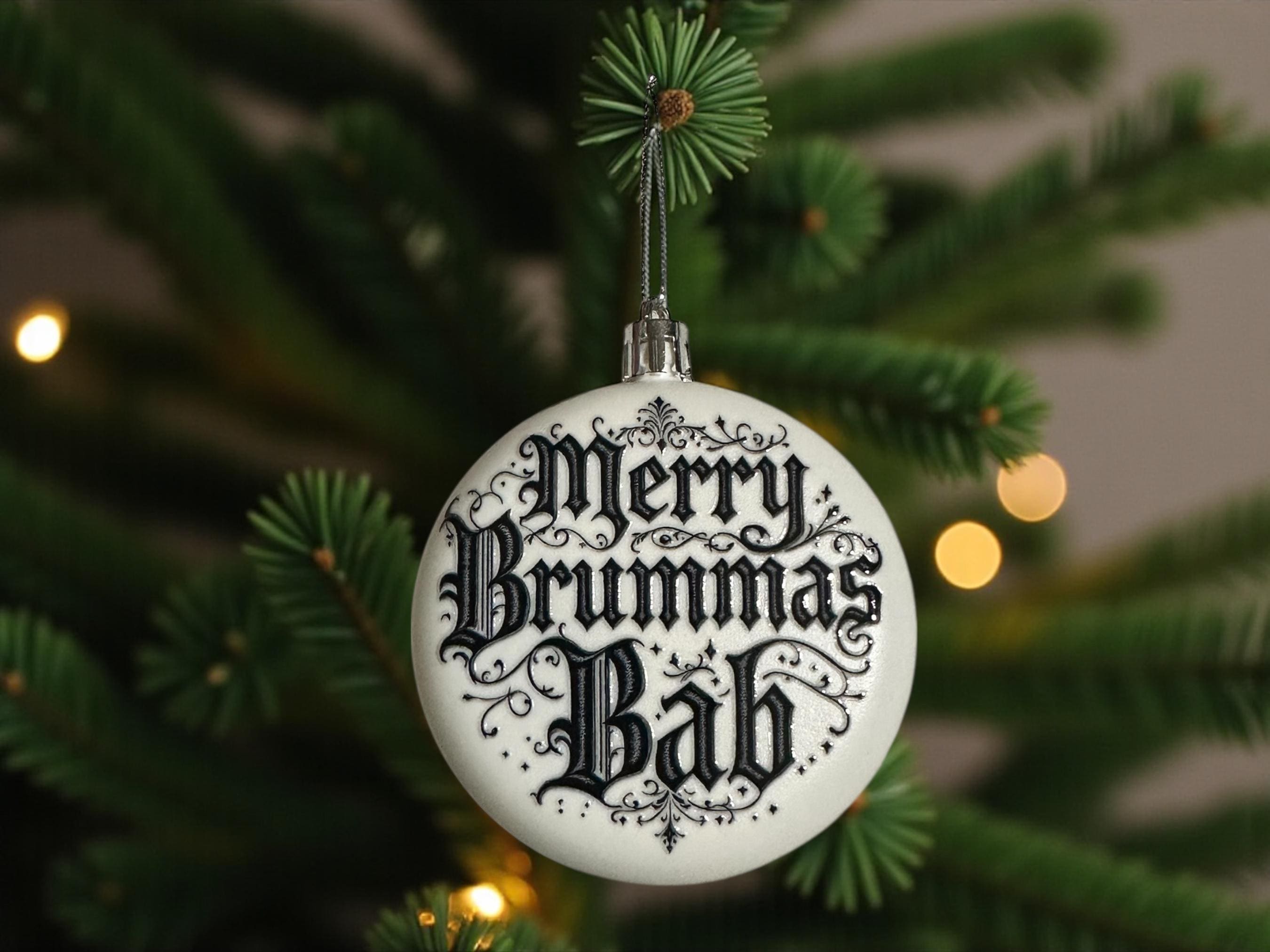 White Acrylic Rounded Christmas Bauble – “Merry Brummas Bab”
