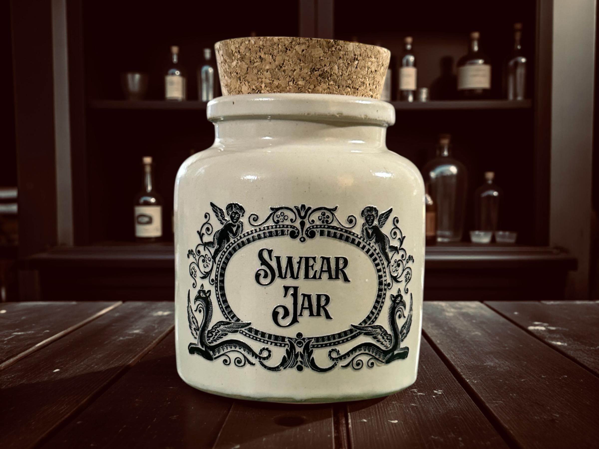 Stoneware Apothecary Jar – “Swear Jar”