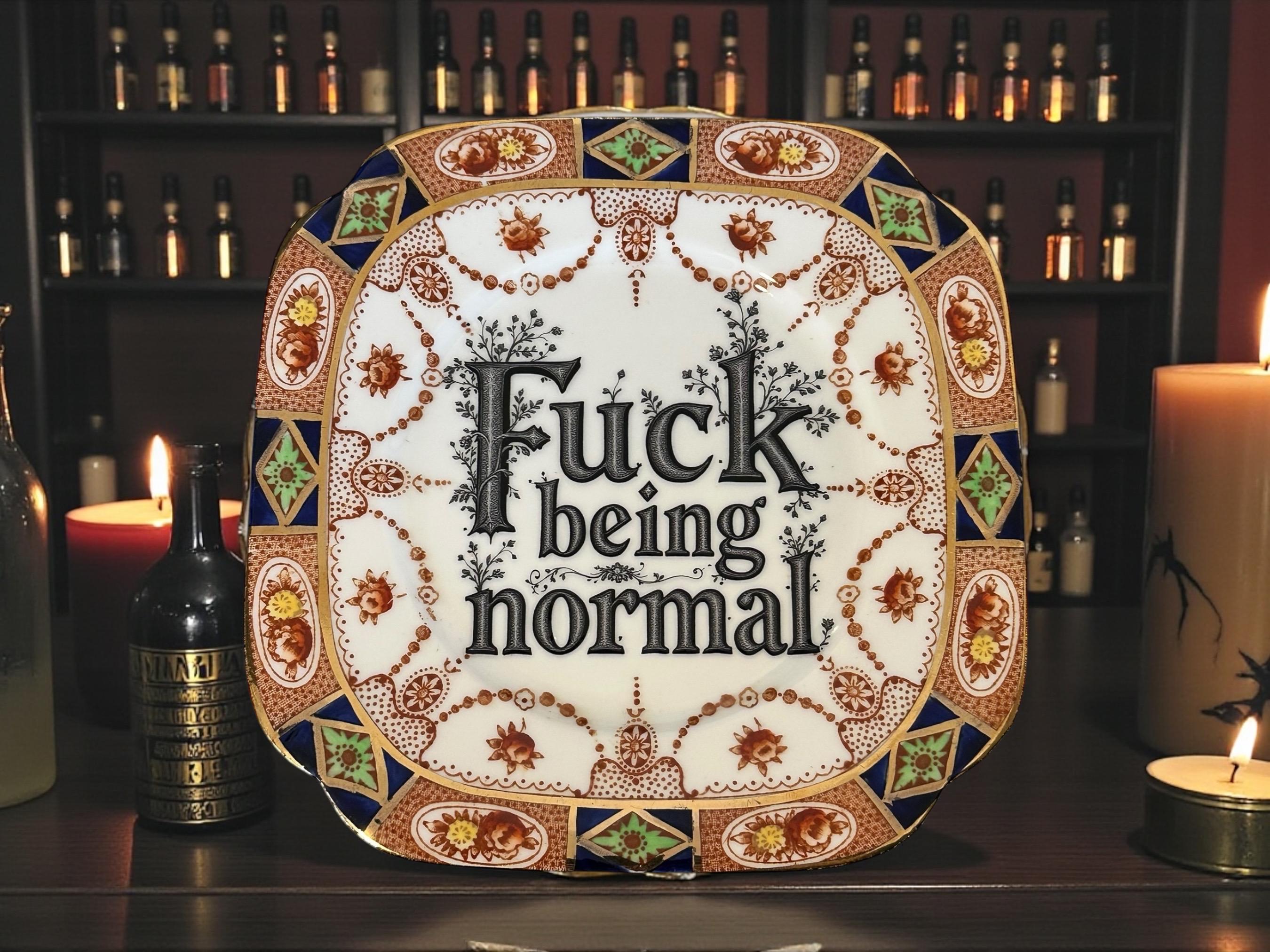 Because normal is boring, overrated, and probably shops at garden centres for fun. This 16cm vintage plate has been rescued and reborn with the phrase “Fuck Being Normal”, perfect for anyone proudly embracing their weird, wonderful, and slightly feral side.