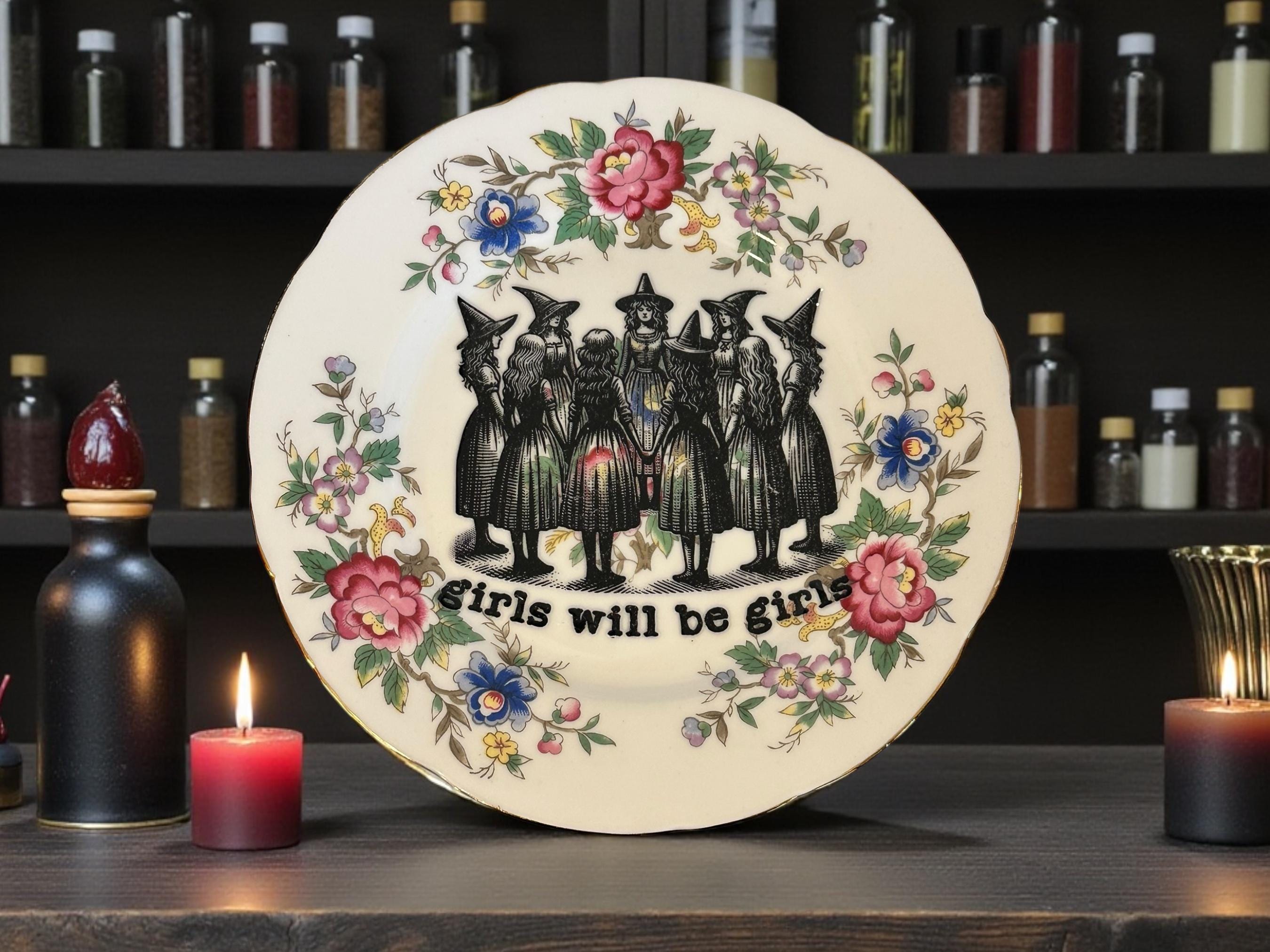 **Vintage "Girls Will Be Girls" Plate – 16cm of Witchy Sass and Magical Mayhem** 🧙‍♀️✨