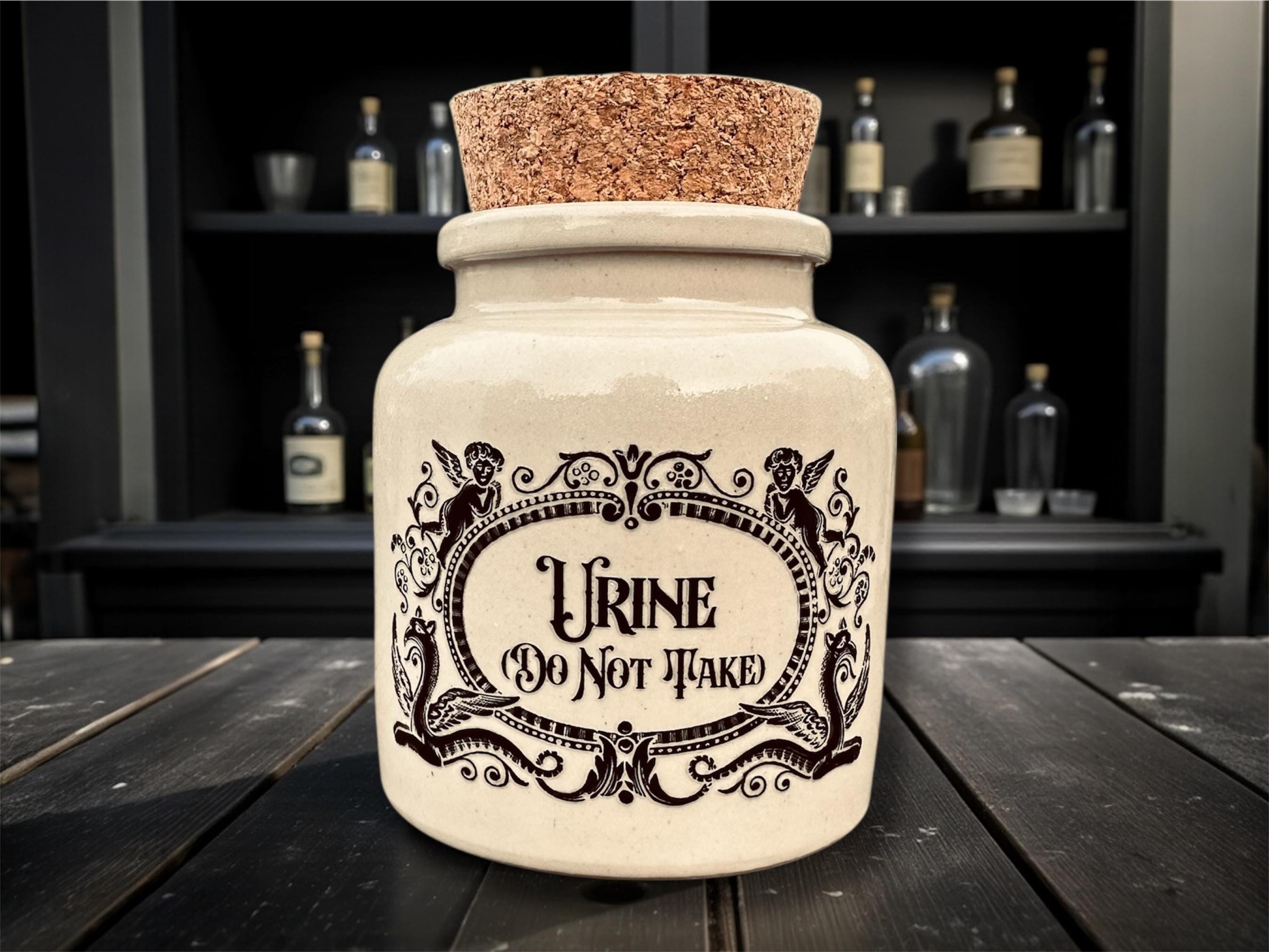 A solid stoneware jar, clearly labelled as a warning, a boundary, and a polite request all in one.