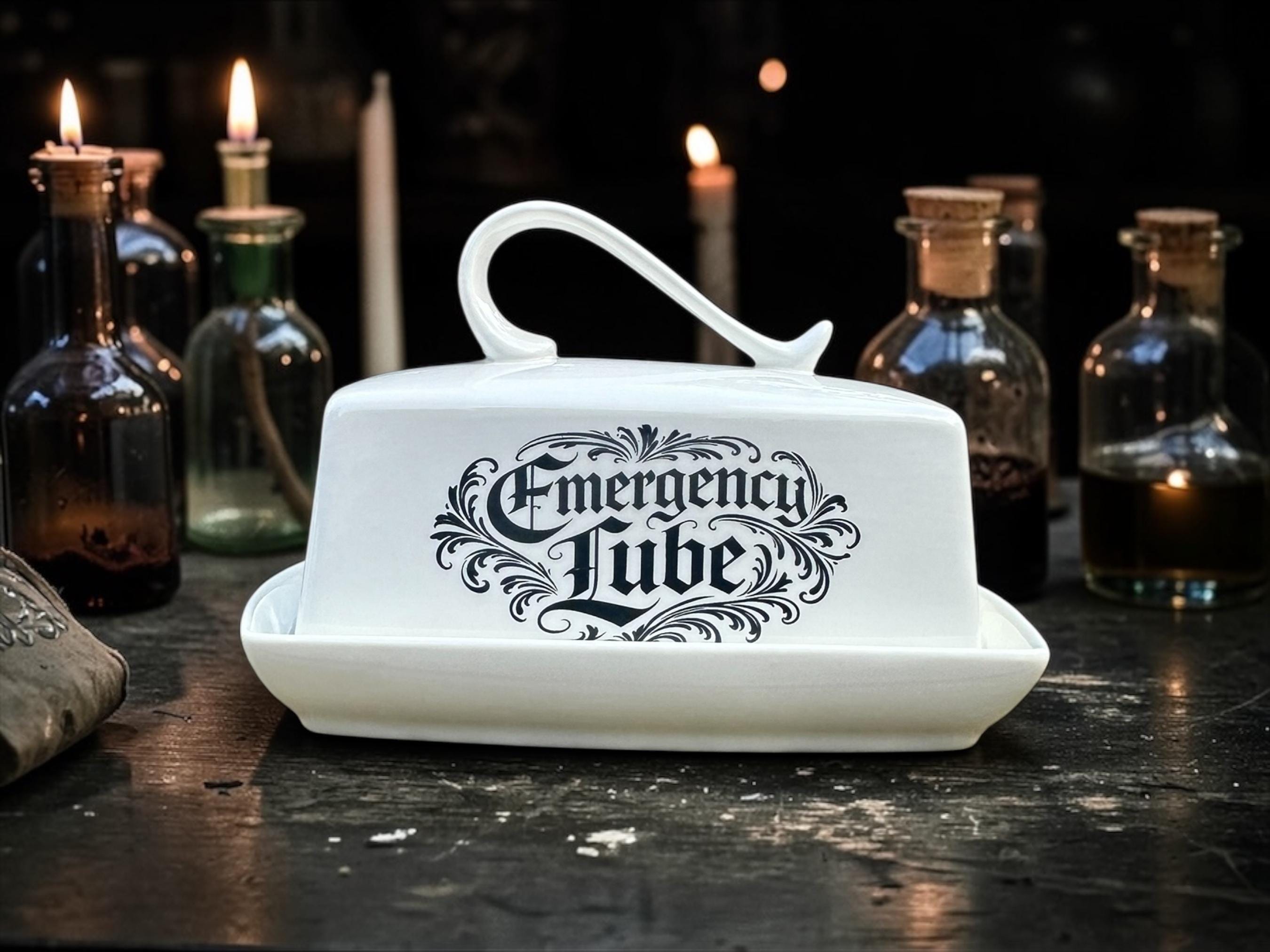 This ceramic butter dish is boldly marked “Emergency Lube”, transforming an innocent breakfast essential into something that will make guests choke on their crumpets. It sits there looking perfectly respectable until someone actually reads it, at which point the room usually descends into the sort of laughter normally reserved for people who never emotionally matured past age twelve.
