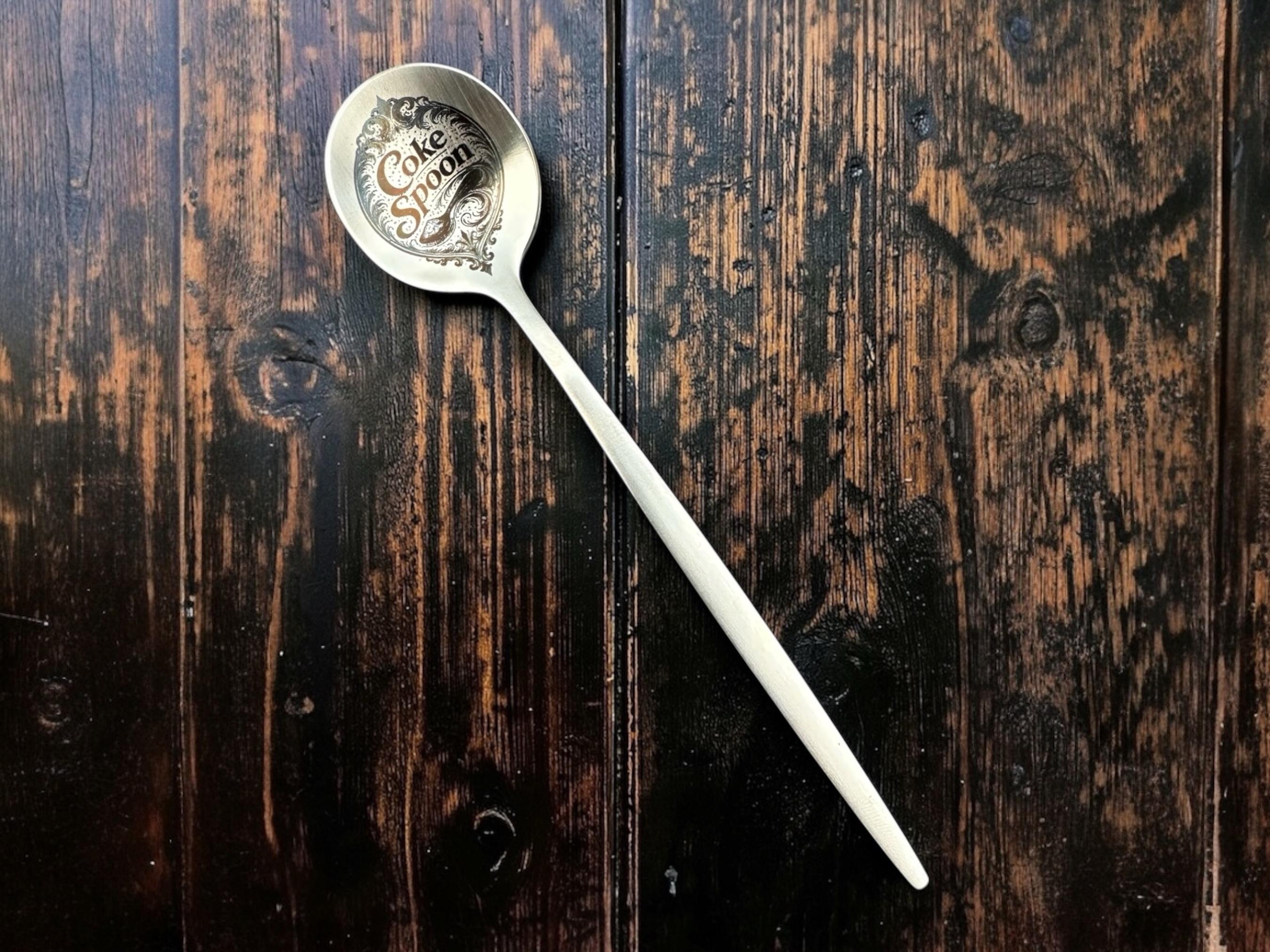 “COKE SPOON” engraved in clean, elegant lettering, giving just enough side-eye to anyone who reads it.